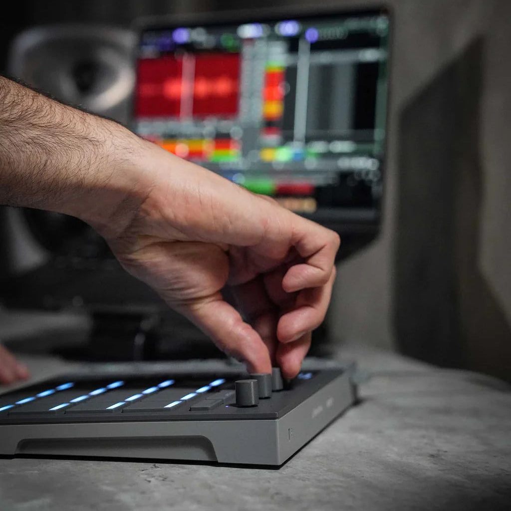 The AlphaTheta SLAB is a dedicated MIDI pad controller designed to bring Serato Studio’s sampling, sequencing, and performance tools into a hands-on hardware format. Built for instinctive beat-making, it combines responsive performance pads, intuitive encoders, and deep software integration to streamline production from idea to finished track. Compact and performance-ready, it reconnects creativity with tactile control, available at Soundium.