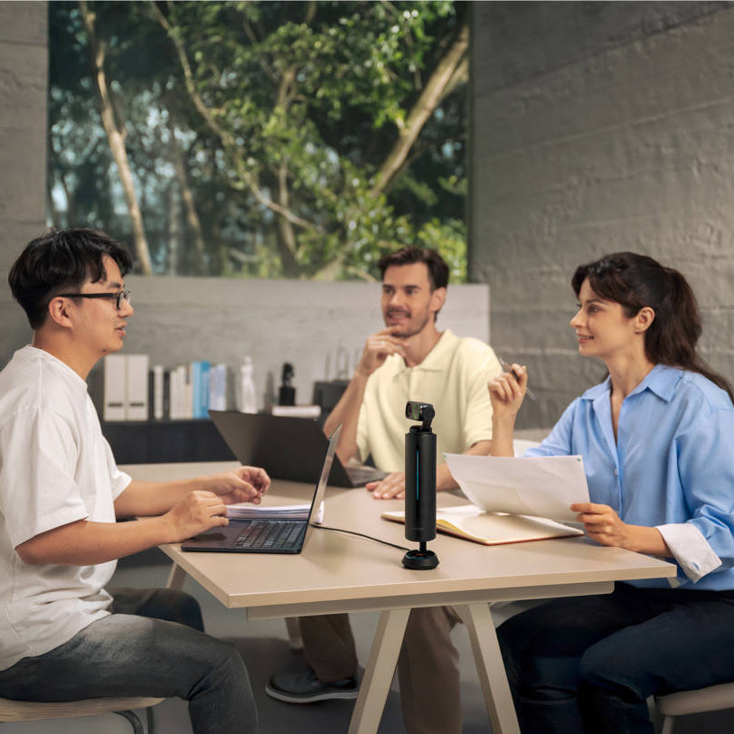 Compatible with computers and mobile devices via USB or Bluetooth. Supports major conferencing platforms and integrates with compatible Insta360 camera systems for coordinated audio-video operation.