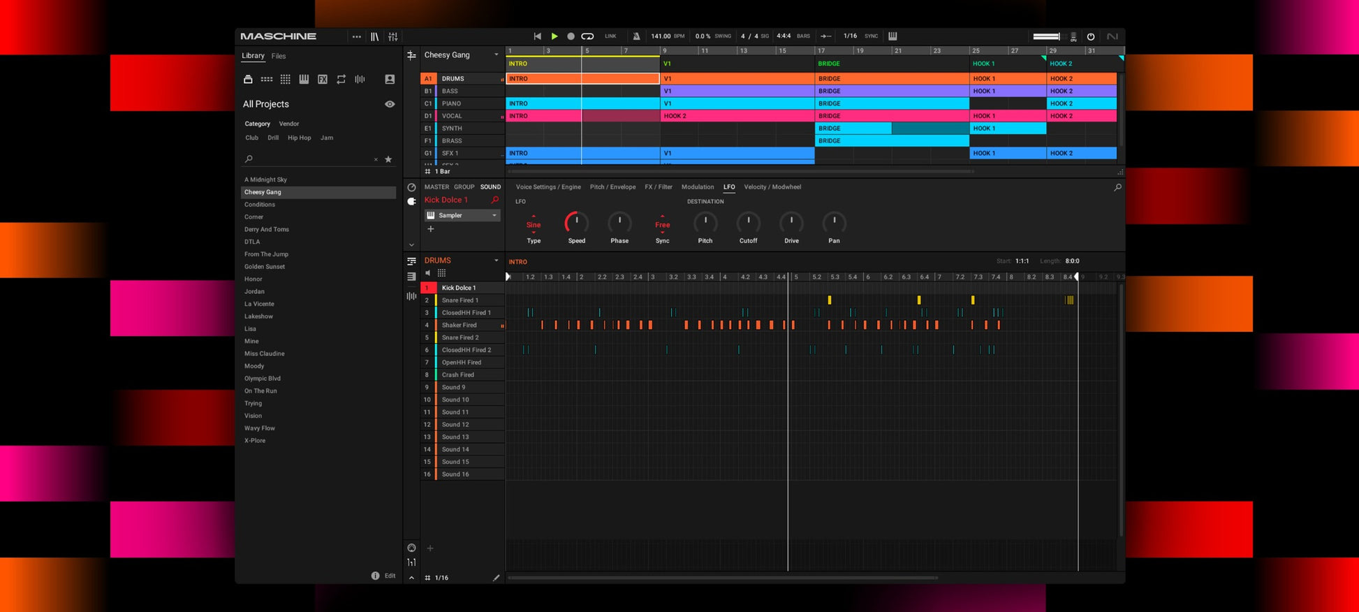 A completely redefined library, Maschine Central has everything you need to make music in any genre. It includes presets from Massive, Monark, Prism, over 700 drums, and 144 multi-sampled Kontakt instruments.