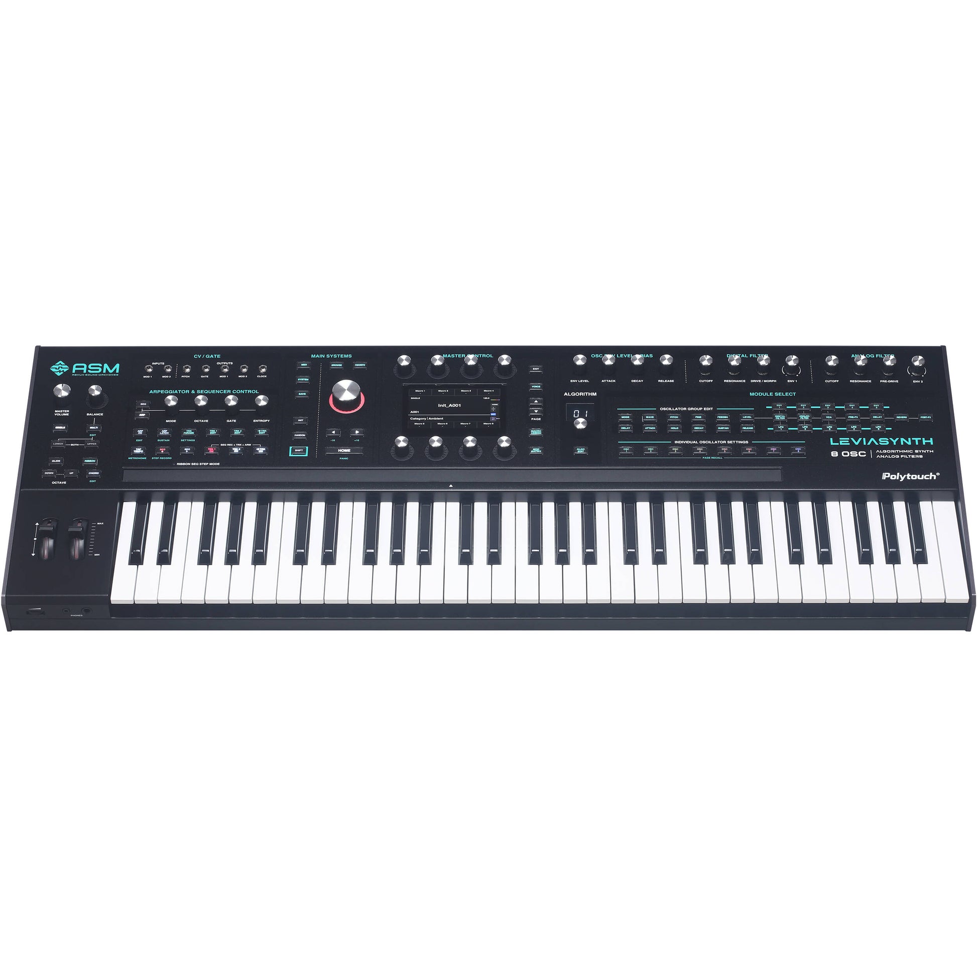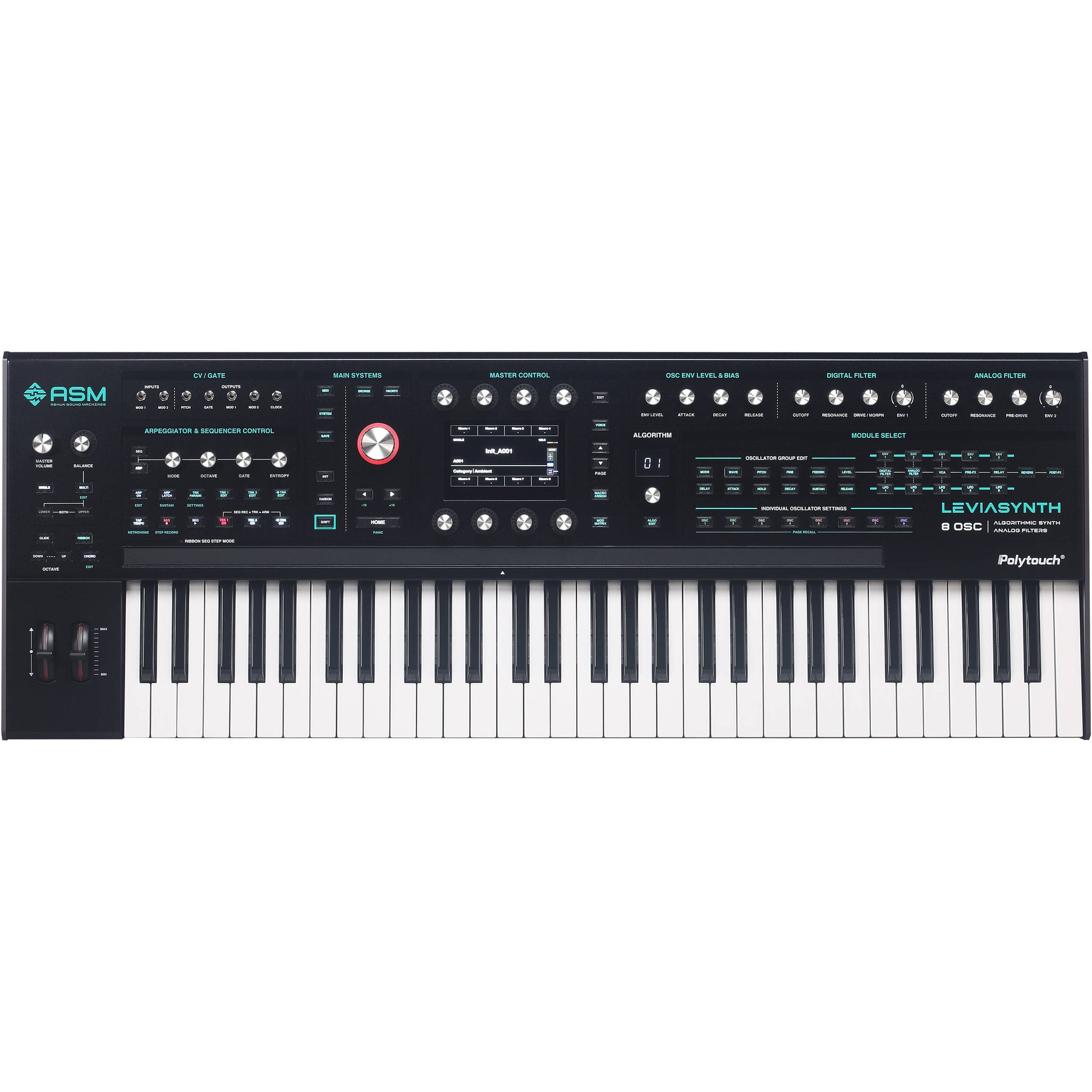 The ASM Leviasynth Keyboard is a flagship hybrid synthesizer built for musicians who demand expressive control, deep sound design, and uncompromising performance. Combining an advanced digital algorithmic engine with true analogue filtering and a 61-key Polytouch® polyphonic aftertouch keybed, it delivers a powerful, tactile synthesis experience for both studio production and live performance.