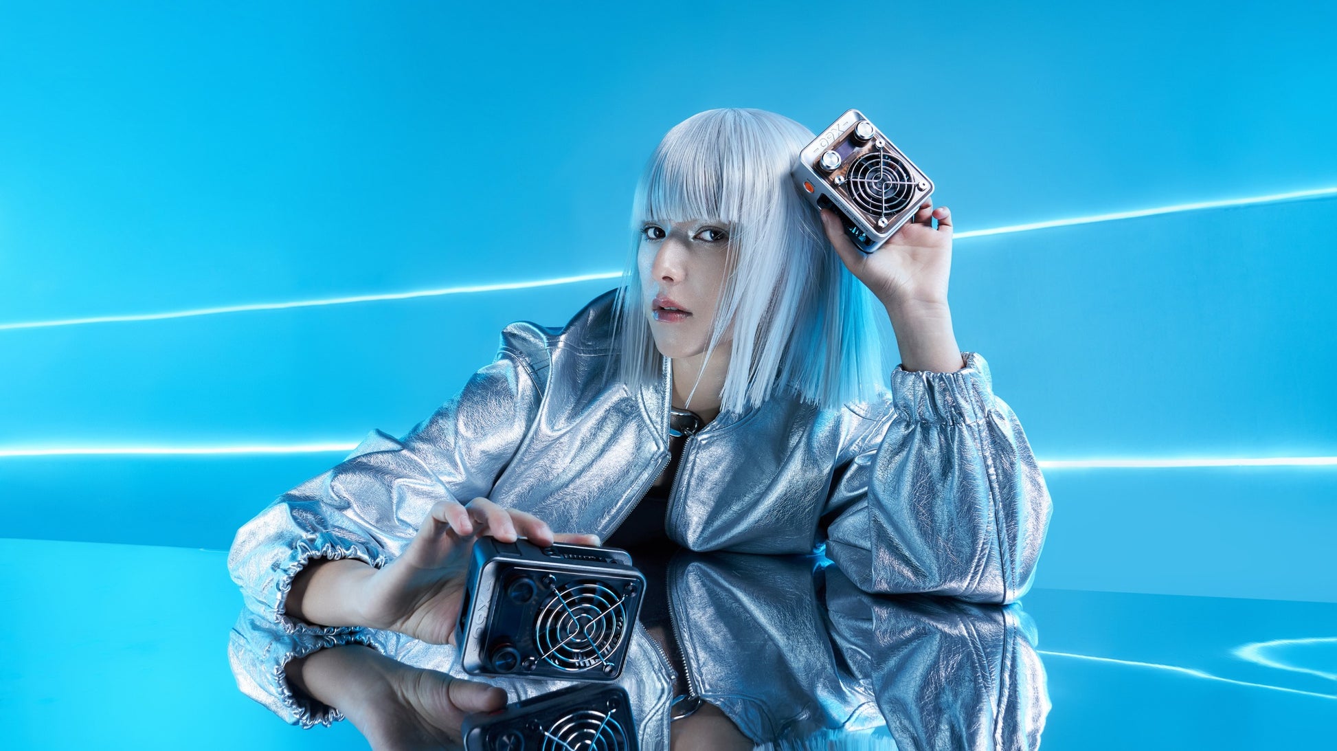 The X60 is combined with a mini reflector, a diffusion dome, and a power adapter with cable.