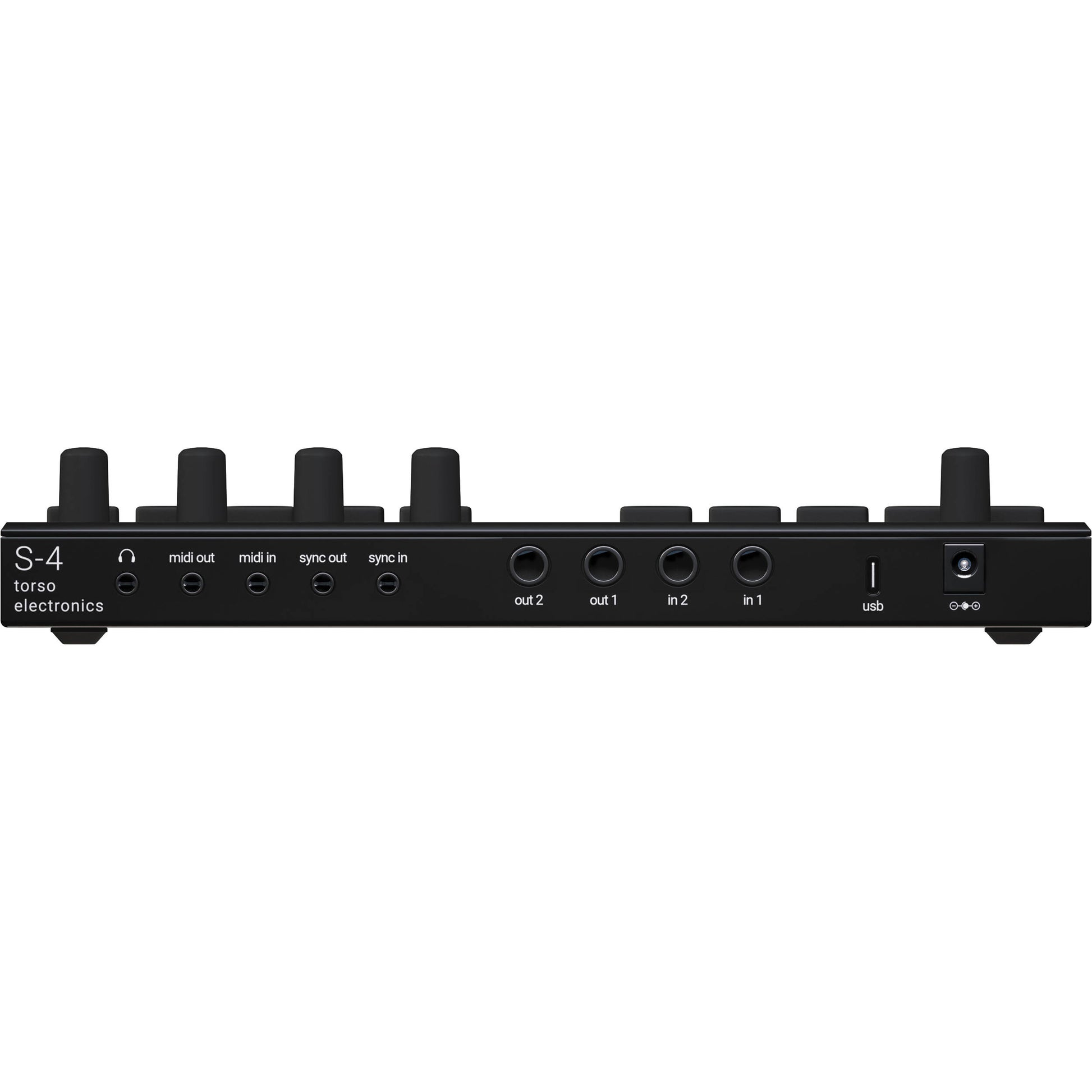 - I/O: 2× 6.3 mm line inputs, 2× 6.3 mm line outputs, 3.5 mm headphone, MIDI in/out (3.5 mm TRS), analog sync in/out (3.5 mm), USB-C (class-compliant audio interface)