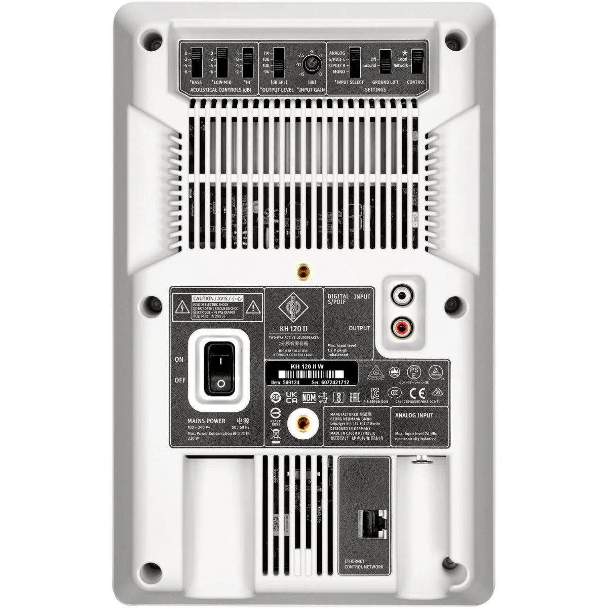 Ljudtekniker, musiker och producenter som behöver en studiomonitor av hög kvalitet kommer att bli begeistrade av den antracitfärgade Neumann KH 120 MKII, en 2-vägs aktiv studiomonitor som är väl lämpad för närfältsmonitorering och flerkanaliga uppsättningar i musikstudior, broadcastcenter och minibussar, såväl som hemmastudior och stationära ljudapplikationer. KH 120 MKII använder två förstärkare (80 W vardera) för att driva 5,25-tums bashögtalaren respektive 1-tums diskanten, en inbyggd DSP-motor, en matematiskt modellerad dispersionsvågledare (MMD), en analog ingång och ett omfattande utbud av valfria monteringsdetaljer.