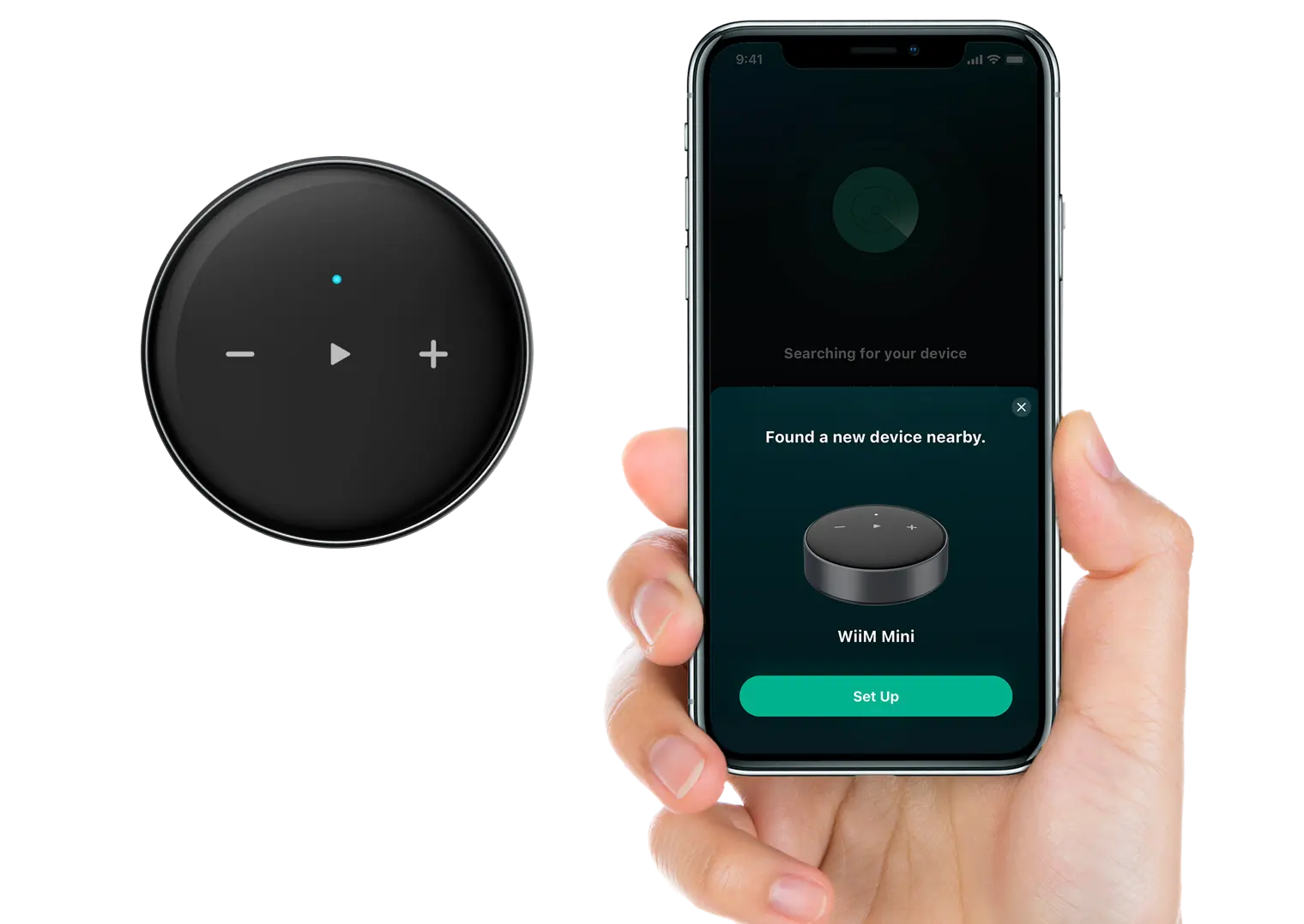 WiiM Mini dyker upp automatiskt i WiiM Home-appen. Följ guiden i appen och börja streama musik på mindre än 2 minuter.